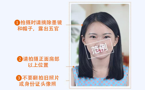 手持身份证,现场照头顶上方要留有空白,不能反季节,不能翻拍手机里的照片,不能是游客照,不能手持身份证,不要带口罩墨镜头箍等等,面部要无遮挡 这是半身照